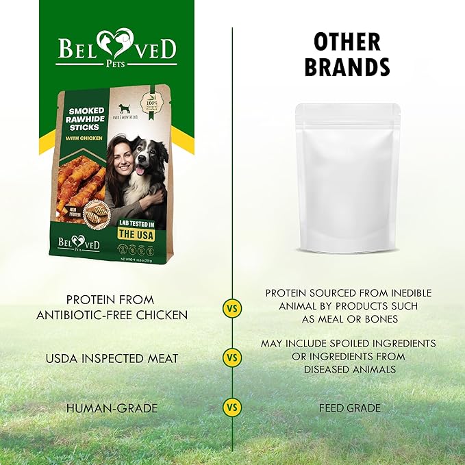 - ✅ALL-NATURAL GRAIN CORN AND GLUTEN FREE DOG TREAT : Your pup deserves the best in life which is why Beloved Pets raw hide Dog Treats are made with quality chicken or duck beef. Grain-free and corn-free it's 100% digestible for your dog's sensitive stomach. Our dog treats n chips is packed in soft pack. Making it the perfect meal on-the-go for your favorite friend.