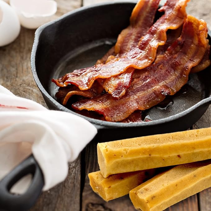 - STICK SIZE THAT KEEPS DOG BUSY β The sticks come in a bag that contains huge pieces of 6-8 inches in length and 1-2 inches in width which is sufficient to keep the dogs busy for hours enjoying the treat. Your pooch will love these delicious bacon dog treats that are made with real bacon.