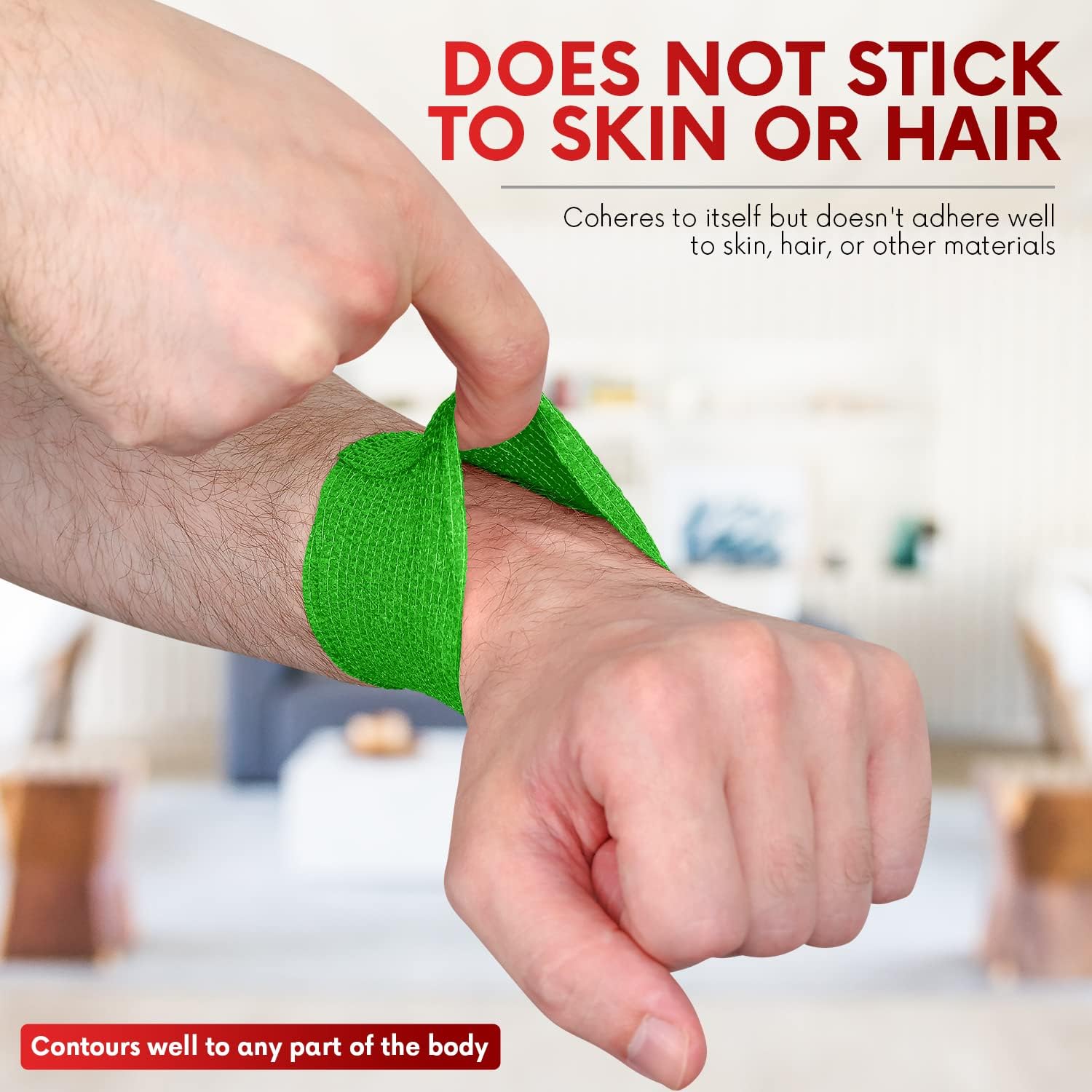 - STRONG SELF-ADHESIVE BANDAGE. This self-adherent wrap is strong enough to stick to itself with non-slip textured surfaces. This ensures no slipping or removal during recovery or exercise, making it a reliable alternative to body tapes, gauze rolls, and medical tapes with wider body coverage.