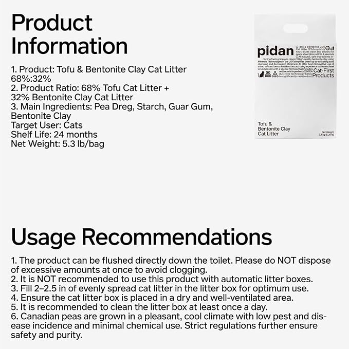 - Material : Main Ingredients: Pea Dreg, Starch, Guar Gum, Bentonite Clay, Product Ratio: 70% Tofu Cat Litter + 30% Bentonite Clay Cat Litter; Main Ingredients: Pea Dreg, Starch, Guar Gum, Bentonite Clay, Product Ratio: 70% Tofu Cat Litter + 30% Bentonite Clay Cat… See more