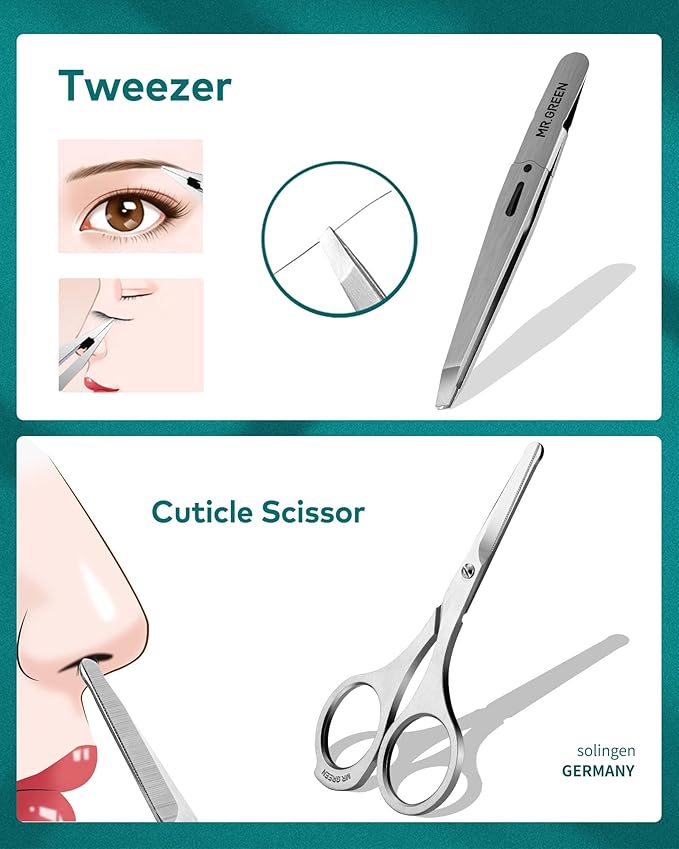 - 【Multifunction Manicure set】Portable travel grooming Kit contains 9 tools for hand care,facial care and foot care. This nail kit will satisfy most of your personal body care needs,allows you to enjoy a comfortable manicuring and pedicuring experience