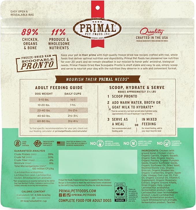 Primal Freeze Dried Dog Food, Pronto Mini Nuggets, Chicken; Scoop & Serve, Complete & Balanced Meal; Also Use As Topper or Treat; Premium, Healthy, Grain Free, High Protein Raw Dog Food (25 oz)