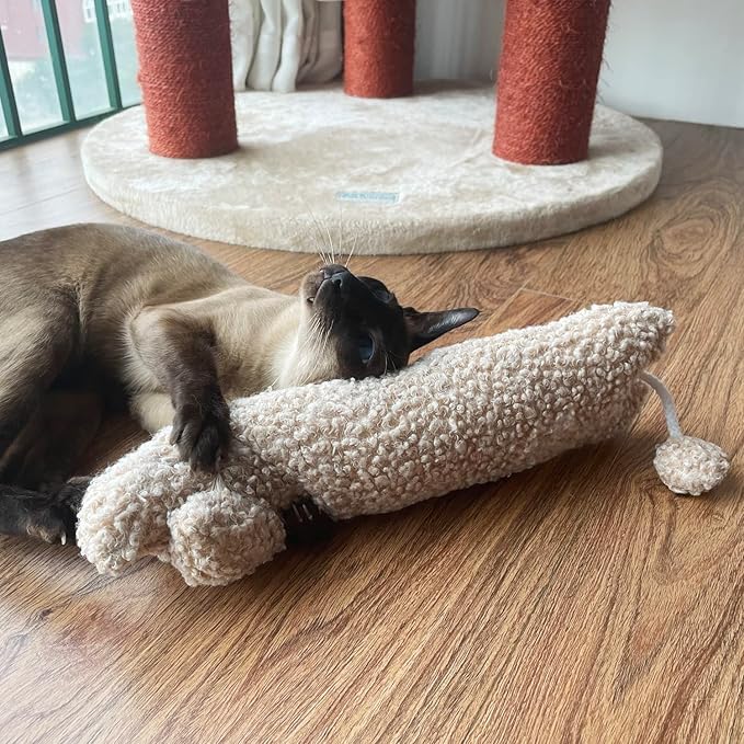 TTcat Catnip Silvervine Matatabi Pillow for Cats & Kittens,Cat Kicker Toy,Large Size Cat Pillow Soothing Plush Cat Toy(Beige).