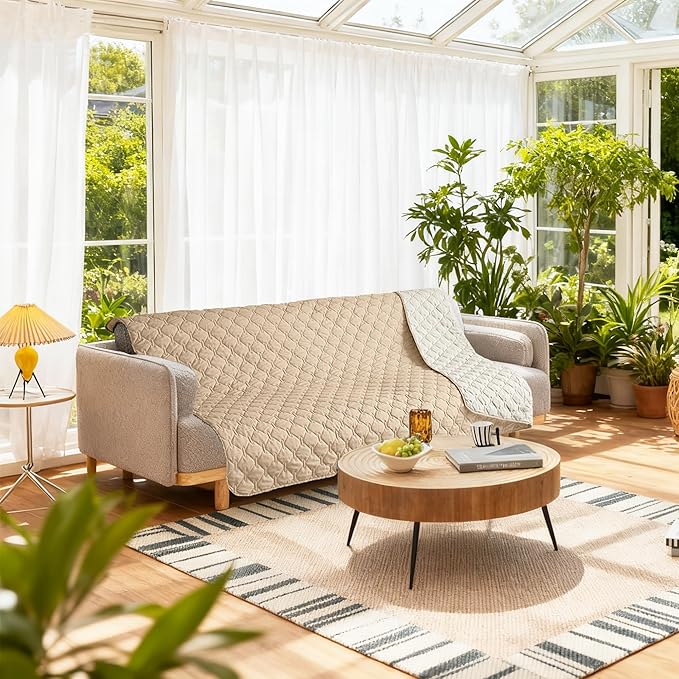 gogobunny 100% Double-Sided Waterproof Dog Bed Cover Pet Blanket Sofa Couch Furniture Protector for Puppy Large Dog Cat, Reversible (82x120 Inch (Pack of 1), Dark Beige/Light Beige)