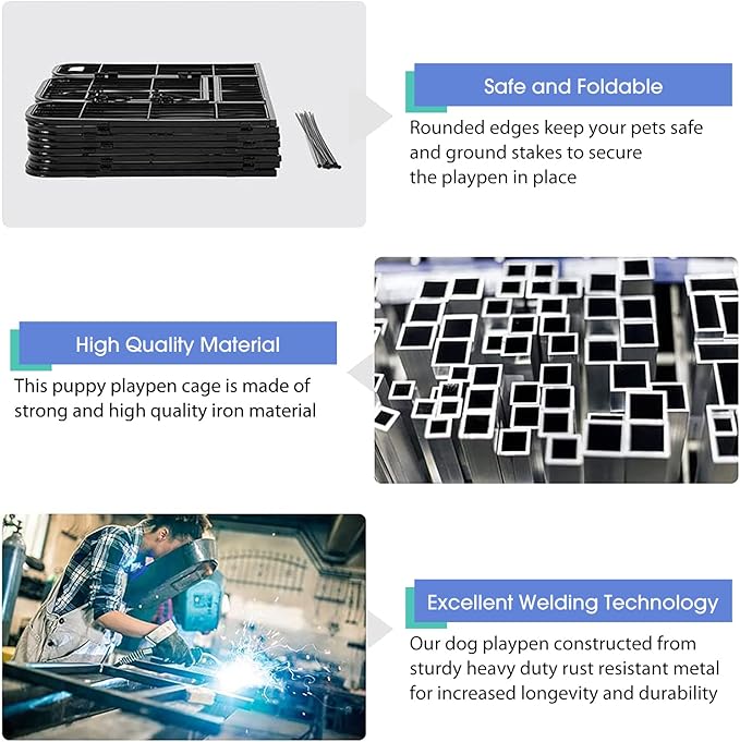 BestPet | Dog Playpen | 32 Inch, 24 Panels | Heavy Duty Metal Pet Exercise Pen | Indoor Outdoor Fence Panels | Rust-Resistant, Removable, Tool-Free Setup | Anti-Skid, Expandable Design