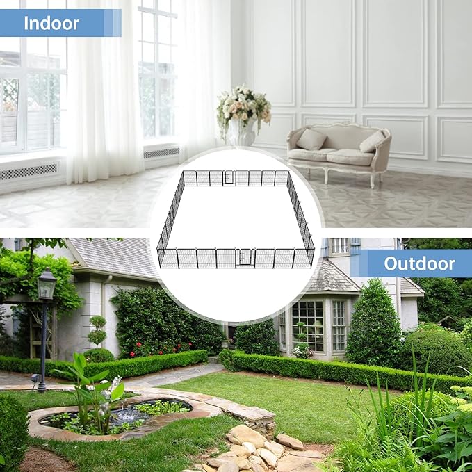 - DURABLE METAL FENCE PANELS: Heavy-duty iron with a rust-resistant finish makes this fence strong and secure. Use the sturdy fence panels as a dog fence outdoor for yard or indoor setup.
