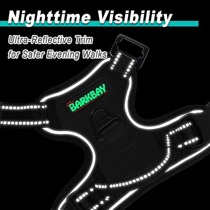 BARKBAY Dog Harness No Pull 3 Buckles for Large Dogs - Adjustable, Reflective, Comfortable, No Choke, Heavy-Duty - Perfect for Outdoor Training, Walking, and Hiking - Strong & Durable - L & Black