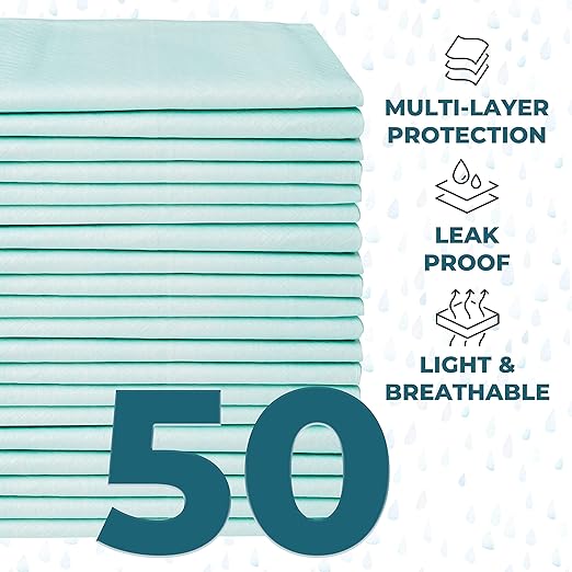 GREEN LIFESTYLE Underpads - Chucks Pads Disposable Adults, for use as Incontinence, Pet, Pee Pads for Dogs, Cats, Bunny, Seniors (Pack of 50 - 36x36)
