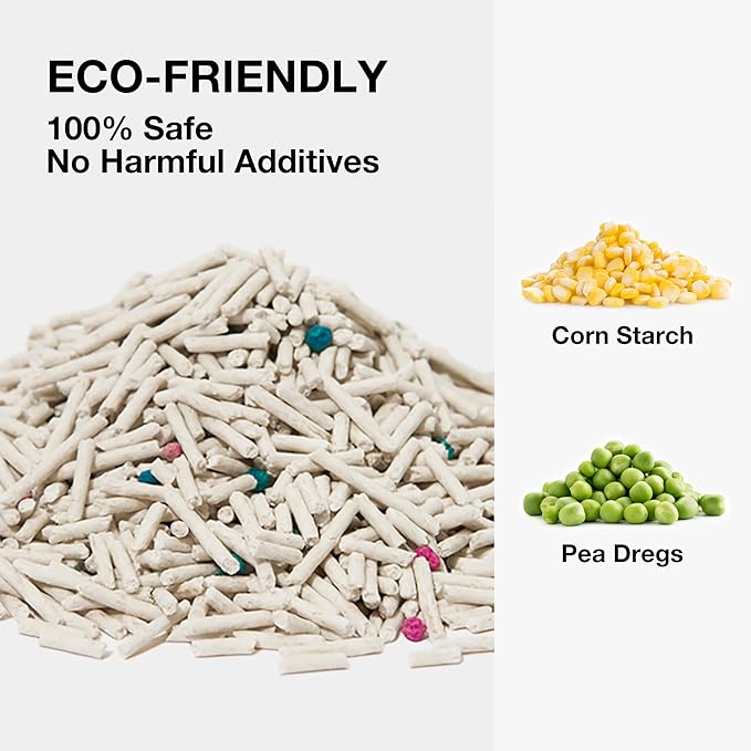 - 【Natural Plant-Based Ingredients】 Our fast clumping tofu cat litter is made from all-natural peas and cornstarch, guaranteed safe ingredients.It can maximize water absorption & deodorization, anti-sticking, dust-free and always keeps air fresh