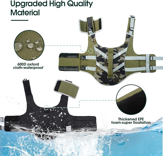 - Durable Fabric with Superior Flotation: The professional ripstop life jacket consist of ripstop Oxford & Nylon cloth, and high-density pearl cotton foam that offers maximum flotation in the water. Our dog safety vest also offer a comfortable motion and doesn’t restrict movement on land.
