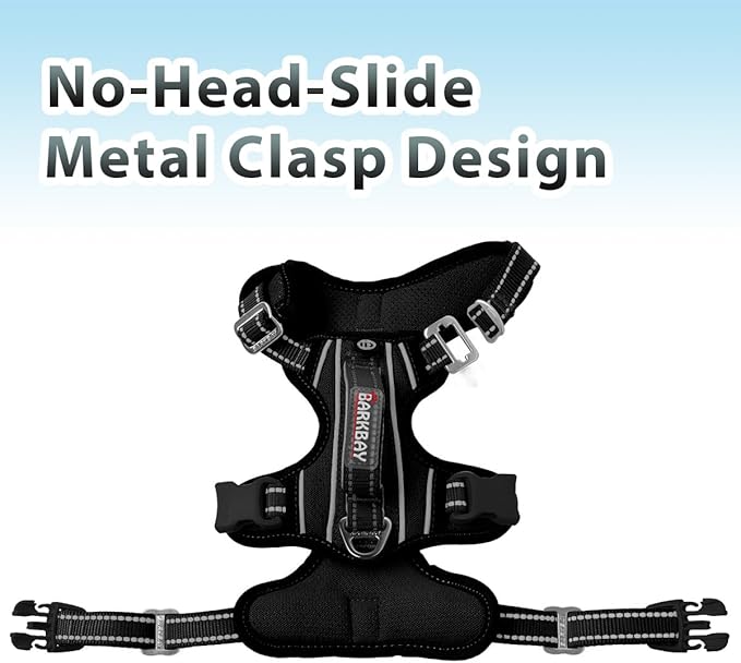 BARKBAY No Pull Dog Harness 3 Buckles Large Reflective Dog Harness with Front Clip and Easy Control Handle for Walking Training Running with ID tag Pocket(Black,S)
