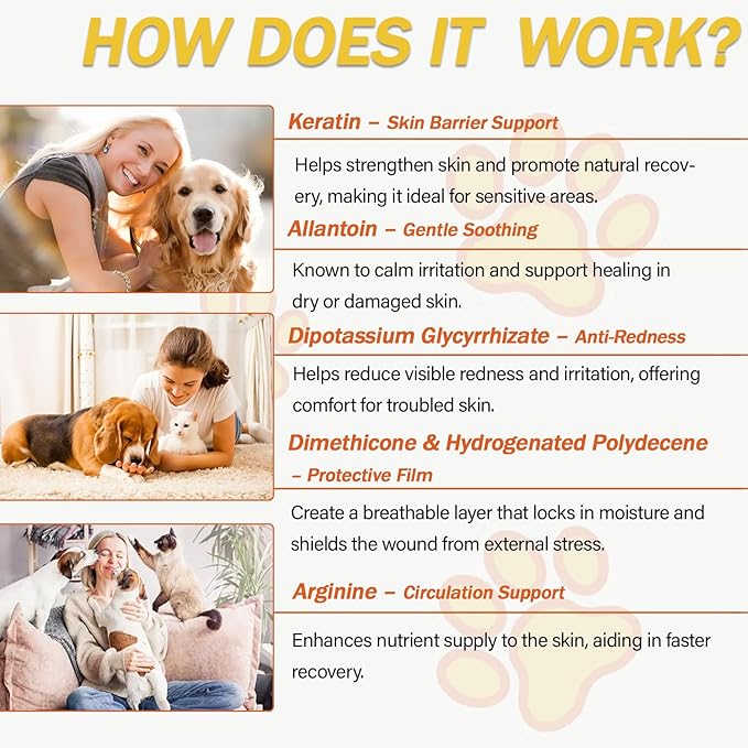 - ✅ 【ENRICHED WITH PATENTED FK KERATIN】 Formulated with FK Scalp keratin from New Zealand wool, our advanced formula helps accelerate healing by boosting collagen production and supporting skin regeneration. This cat wound ointment and dog skin treatment works naturally without antibiotics or steroids.