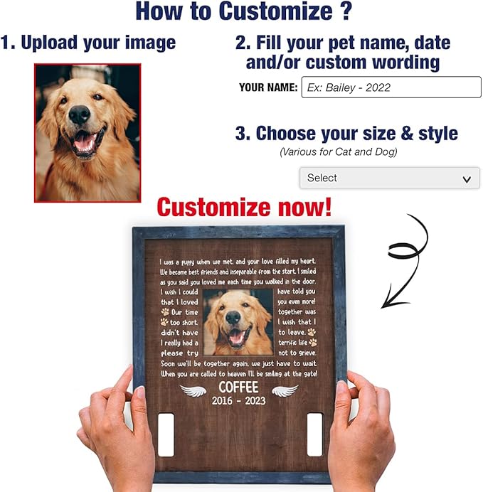 - π [Personalized Memorial Gifts]: Create the perfect things to preserve the memory of your fur baby with this dog passed away gift that provide space for your petβs collar alongside your favorite photo. Each sign is individually handmade to celebrate your beloved pet's life and keep their memory alive.