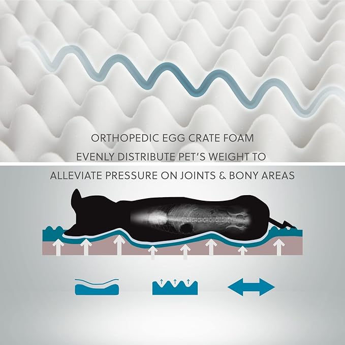 - Orthopedic Support: Our orthopedic dog sofa is designed to give your pet unparalleled support for a deep, dreamy sleep. High-density egg-crate foam helps distribute weight evenly and provides the perfect amount of pressure relief and joint support.
