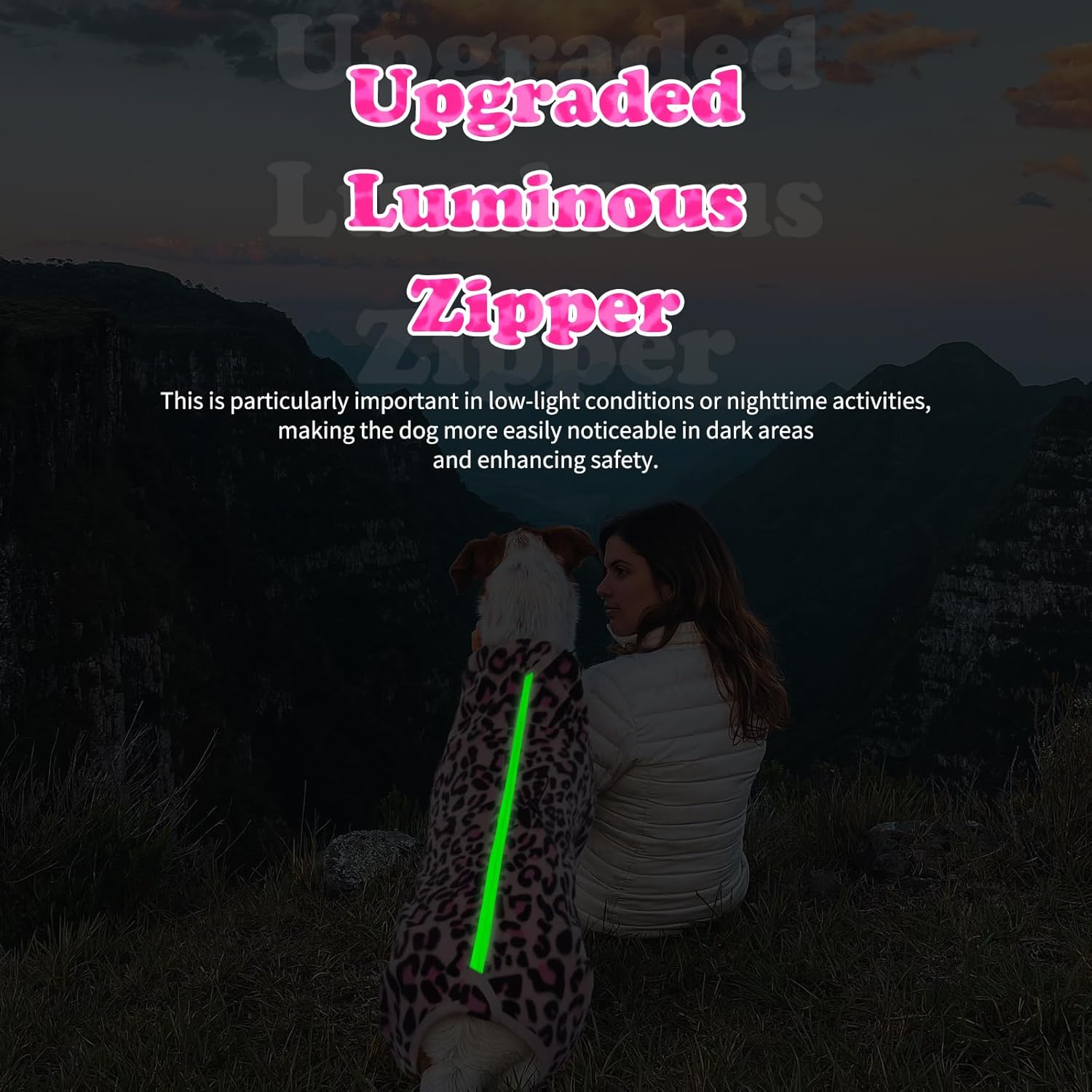 ROZKITCH Dog Winter Coat Soft Fleece Pullover Pajamas, Pet Windproof Warm Cold Weather Jacket Vest with Luminous Zipper, Jumpsuit Apparel Outfit Clothes for Small Medium Large Dog L-Pink XL