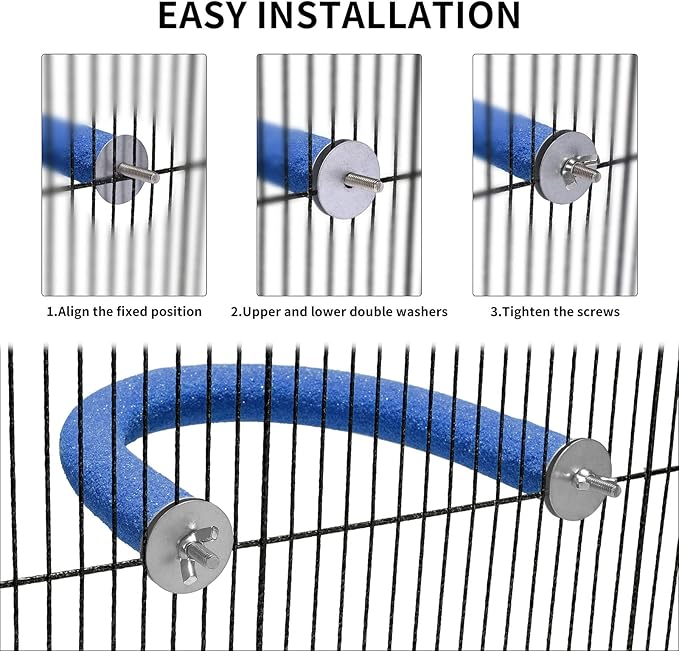 - 【Easy to install and wash】: Each parrot perch is fully outfitted with a metal wing nut and a built-in bolt. No extra equipment is required for installation and the perches deliver a secure hold. Cleans with soap and water directly, the quartz sand won’t fall down from the perch.