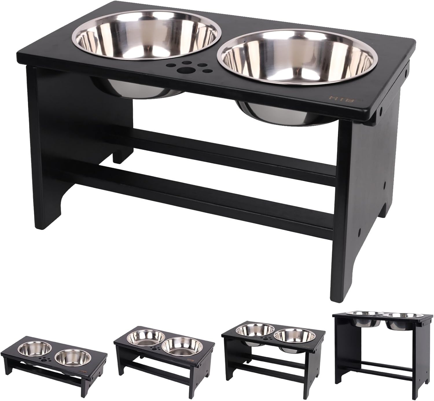 HTB Elevated Dog Bowls,Raised Dog Bowl Stand with 2 Stainless Steel Bowls,Elevated Raised Dog Bowls for Large Medium Small Sized Dogs