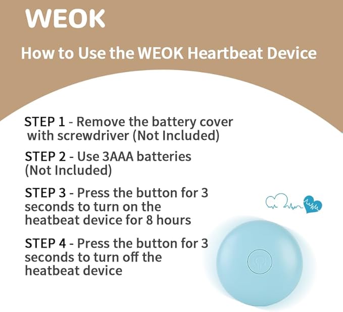 - Anxiety Relief: The heartbeat puppy toy simulates an atmosphere of accompany, it can help puppies and cats to relief the separation anxiety, loneliness, go through the tough time and adapt the new home or other complex environment. it is a good behavioral training aid toy which could comfort your puppies sleep better.๐๐Important tips for heartbeat device: Press and hold the switch long enough, it works; Press and hold the switch long enough, it stops.