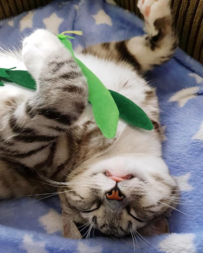 - Funny Cat Toys: Package includes 4pcs green hyacinth bean shape cat kicker toys with organic catnip in them. Your cats will surely love playing with this cute cat kicker toy!