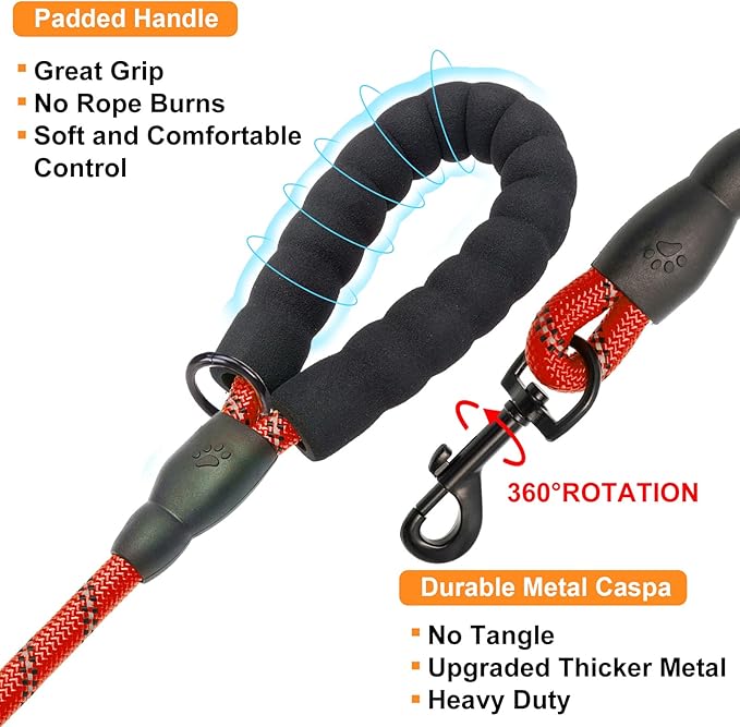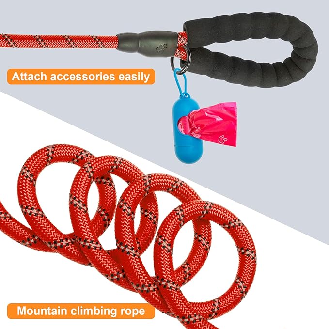 - ✅ REFLECTIVE AND NYLON MATERIAL - Nylon climbing rope with high density webbing to add durability. Luminous reflective threading through the full dog leashes keep you and your dog both safe and visible on the late-evening walks.