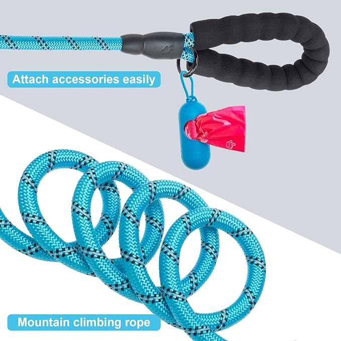 - ✅ REFLECTIVE AND NYLON MATERIAL - Nylon climbing rope with high density webbing to add durability. Luminous reflective threading through the full dog leashes keep you and your dog both safe and visible on the late-evening walks.