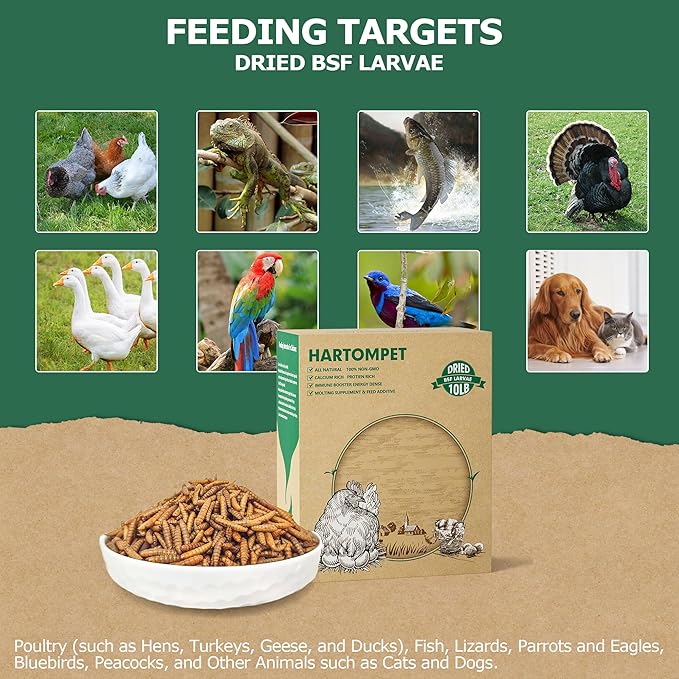 - 100% Natural: HARTOMPET originates from specialized grub farms where larvae feast on vegetables and grains. This guarantees a clean process. 1lb. of HARTOMPET equals the transformative potential of 10 lbs. of food into precious dried larvae, actively contributing to our planet's sustainable growth.