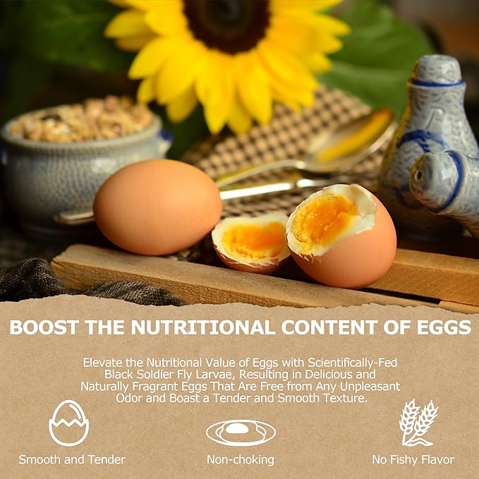 - Empowering Poultry Health: Revel in extraordinary health benefits that invigorate your poultry's well-being - fortified eggshells, amplified energy, and egg production. With calcium levels 85 times that of conventional mealworms, itβs perfect for molting, supplying vital protein and calcium sans extra supplementation.