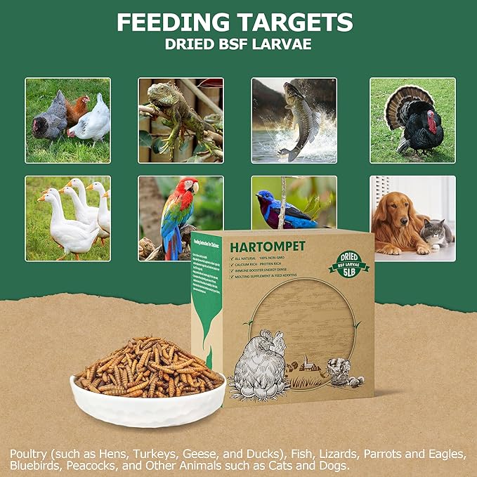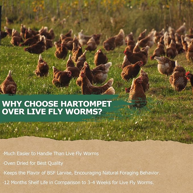 - 100% Natural: HARTOMPET originates from specialized grub farms where larvae feast on vegetables and grains. This guarantees a clean process. 1lb. of HARTOMPET equals the transformative potential of 10 lbs. of food into precious dried larvae, actively contributing to our planet's sustainable growth.
