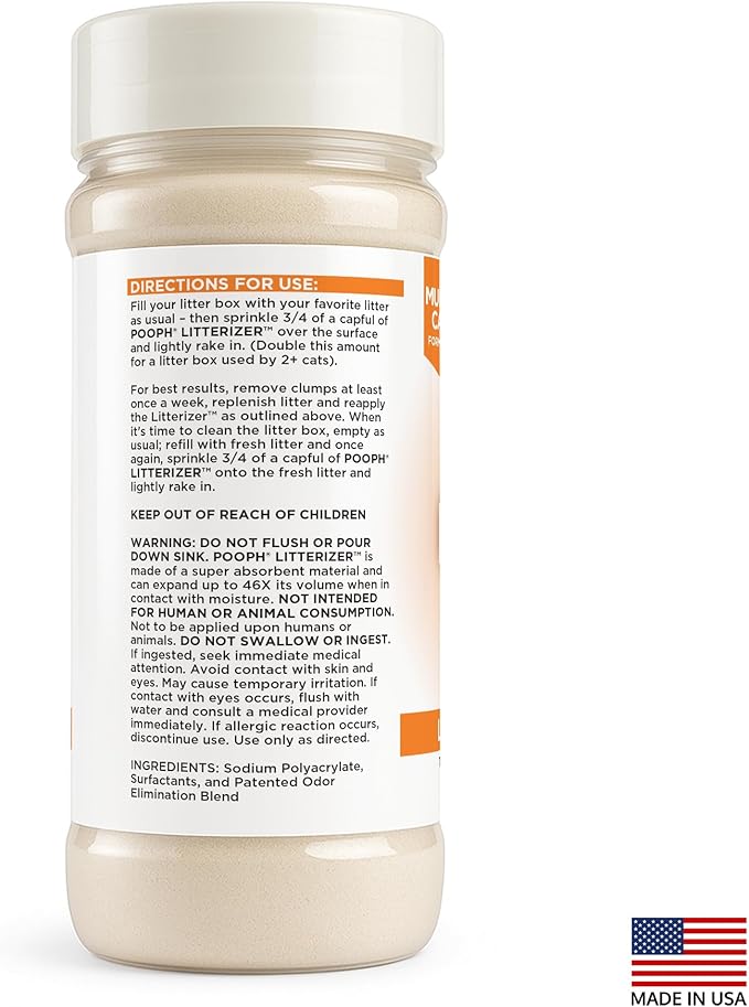 POOPH® LITTERIZER® – 16oz Bottle – Absorbs 46x Weight in Wetness & Odor – Keeps Litter Dry, Reduces Mess, Reduce Litter Costs AND Get a STINK-FREELitter Box – WITHOUT Fragrances or Harsh Chemicals