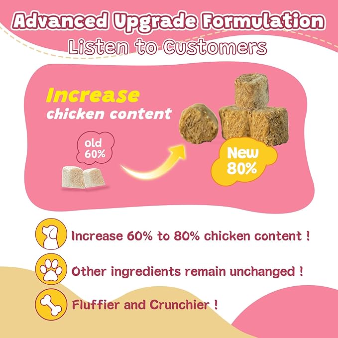 - Made with Pure Raw Ingredients: We follow the dog's instinct by using raw. Our dog glucosamine freeze dried treats are so delicious and in perfect size, made with raw chicken breast. The freeze-drying technology can better lock in the nutrients and flavor, and make it shelf stable. Even the pickiest pets will love our crunchy treats. Made without grain, corn, gluten, soy, artificial colors or preservatives, and Non-GMO.