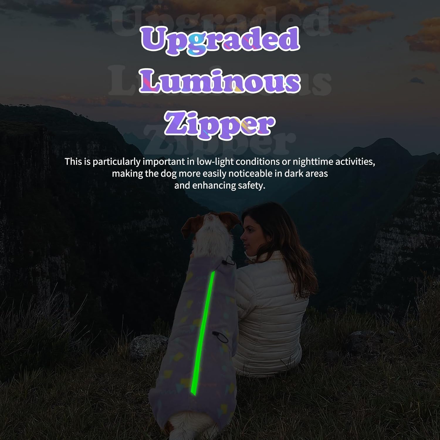 ROZKITCH Dog Winter Coat Soft Fleece Pullover Pajamas, Pet Windproof Warm Cold Weather Jacket Vest with Luminous Zipper, Jumpsuit Apparel Outfit Clothes for Small Medium Large Dog Geometry M
