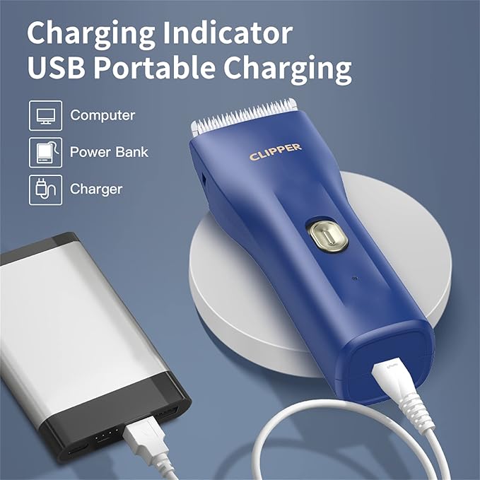 - WIRELESS AND RECHARGEABLE - Cordless and rechargeable design for easy to use. Pet grooming clippers equipped with lithium iron phosphate battery, this electric pet clipper can charge with wall charger, power bank, desktop or laptop etc. Never worry the battery's used up, it's very easy to carry in anywhere.