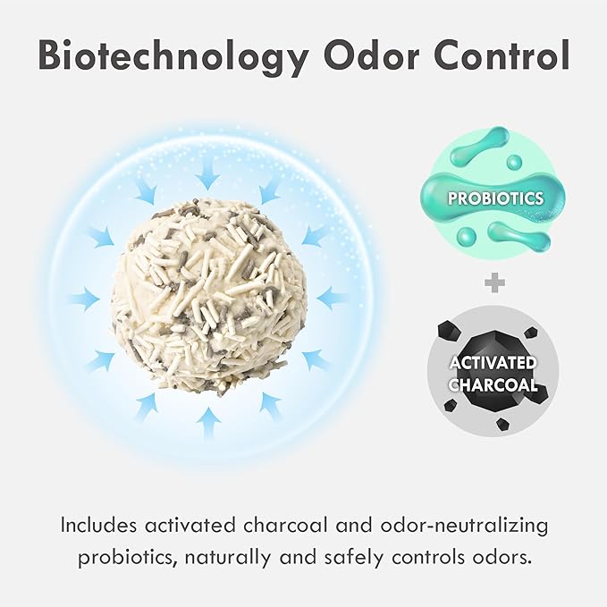 - Advanced Odor Control and Water Solubility: Experience advanced odor control with our exclusive probiotic and activated carbon formula, ensuring a fresh and pleasant atmosphere for both you and your feline companion. Plus, our cat litter is crafted from food-grade ingredients, offering an environmentally friendly and biodegradable solution. It even dissolves quickly in water, making cleanup a breeze.
