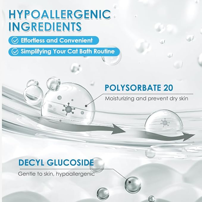 - ✅ GENTLE, LICKING-SAFE FORMULA — Your cat's safety is our priority. Our pH-balanced formula is enriched with skin-soothing Allantoin and conditioning Vitamin B6, using gentle, plant-derived cleansers. It's completely safe for your fastidious groomer. Free from parabens and harsh chemicals, it's the perfect hypoallergenic choice for sensitive skin, kittens, and post-surgery recovery.