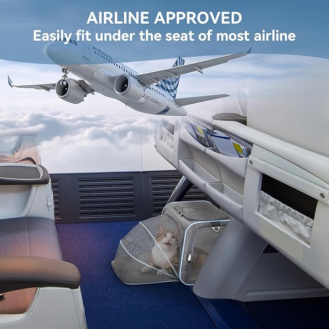 - 【Airline Approved Pet Carrier】This carrier of S & M size is airline-approved, in compliance with airline standard size rules. Easily to get this under the airplane seat when traveling. As for the size of L, it is best to check the size standard of the corresponding airline(PS: There are two detachable fiber rods on both sides of the top of the carrier. When the large carrier is too high to fit under the seat, you can remove the two fiber optic rods and put them in easily)