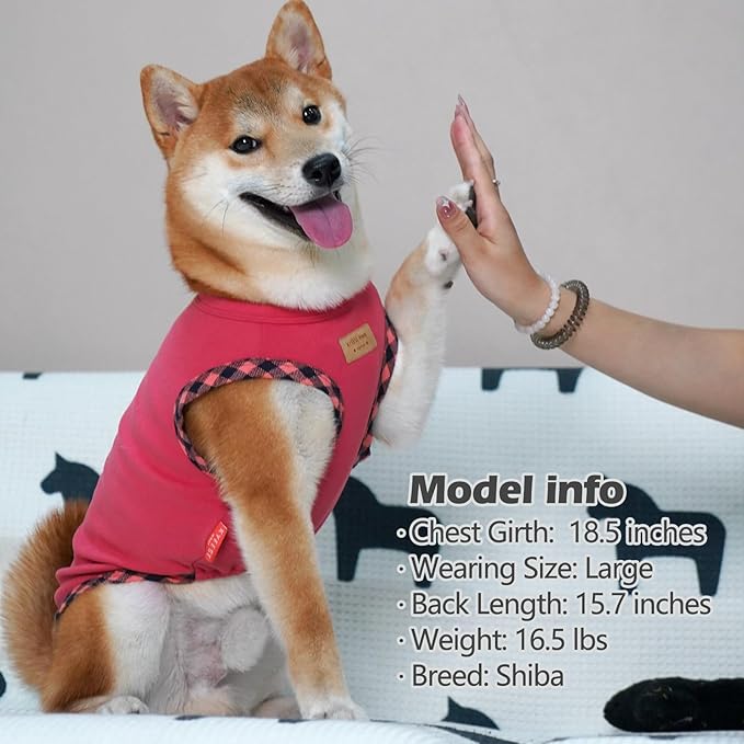 KYEESE Dog Shirt (2Pack Grey+Pink, Large) - Stretchy Velvet Pullover Vest, Lightweight Fleece, Sleeveless, Plaid Binding, Button Decoration, Breathable, Comfortable, for Small Dogs