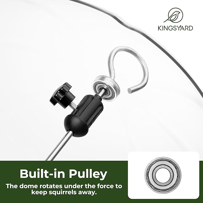 - Squirrel Guard Dome: Features a rotating dome to deter squirrels from accessing the food; Ensures a stress-free feeding experience for birds by preventing squirrels from gaining a stable foothold