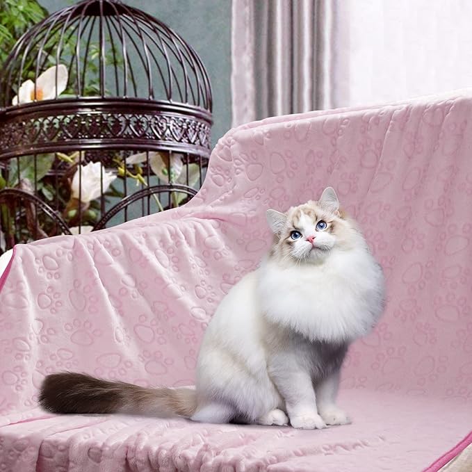 - PREMIUM MATERIAL FOR PETS ONLY: Super Soft & Warm comfy fleece for your pets, exclusive cute paw prints design on the top, lovely solid pink color on the back, no fear of peeing, bitting, chewing and tearing. Your dog will love this dog products!