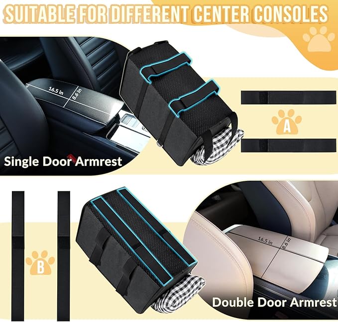 - ๐๐ฎ๐ข๐ญ๐๐๐ฅ๐ ๐๐จ๐ซ ๐๐ฆ๐๐ฅ๐ฅ ๐๐จ๐ ๐ฌ --- The dog bed for car measures 16.5x8.6x8.6 inches, making it suitable for pets weighing less than 11 pounds and with a body length of 13.7 inches or less (from neck to tail). Before purchasing, measure your dog and the dimensions of your center console for the right fit