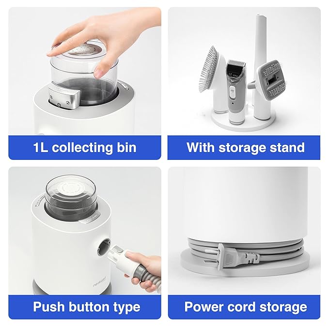 - 【Keep Your Home Clean】Come with 5 proven tools, grooming brush and deshedding tool effectively removes loose hair and reduce shedding, electric clippers can easily trim your pet's hair and achieve the desired grooming style, crevice tool is specifically designed to clean hard-to-reach areas, such as between cushions, in corners, and along baseboards.
