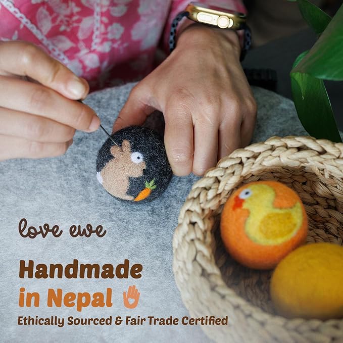 - HANDMADE & DURABLE: These 2-inch felt cat toy balls are hand-felted with 100% premium wool, making them more durable than traditional factory-made toys. They are carefully crafted to ensure they won't fall apart easily during play. These wool toys for cats and dogs are sustainable, cruelty-free, and made by women in underprivileged communities under ethical working conditions. They're Azo-free, lead-free, and safe for both your pet and the planet.