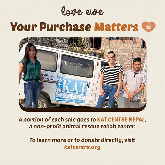 - SUPPORTS ANIMAL RESCUE PROGRAMS: A portion of the proceeds from every Love Ewe pet toy helps support the KAT animal treatment center in Nepal. This non-profit organization rescues and rehabilitates street animals, providing food, shelter, medical care, and adoption services. Your purchase directly contributes to saving animals in need.