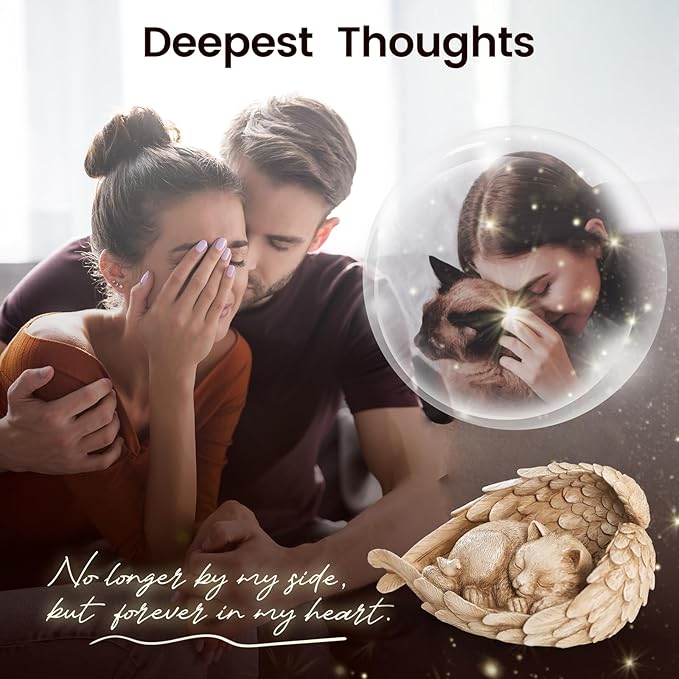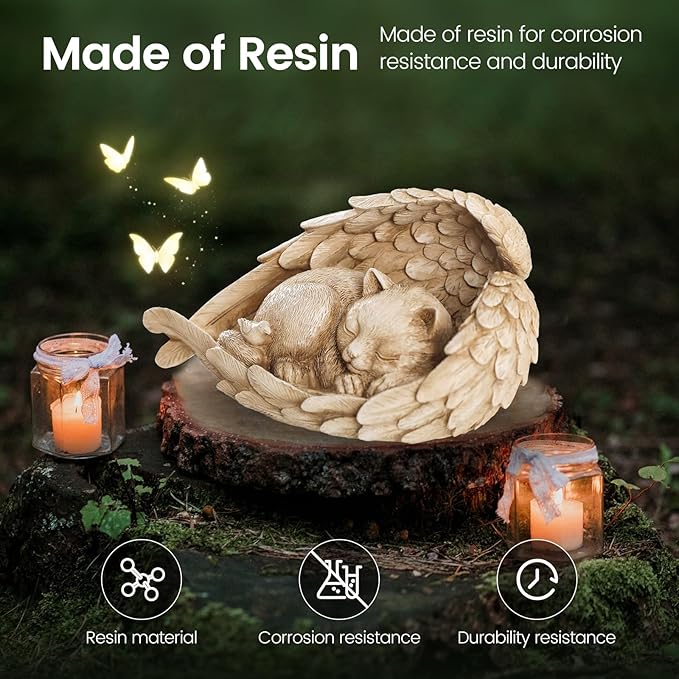 - Meaningful keepsake: Our cat memorial stone is a heartfelt way to honor the memory of your beloved cat. Angel wings embracing a kitten, are very cozy provide a spiritual tribute, and offer comfort during the grieving process.