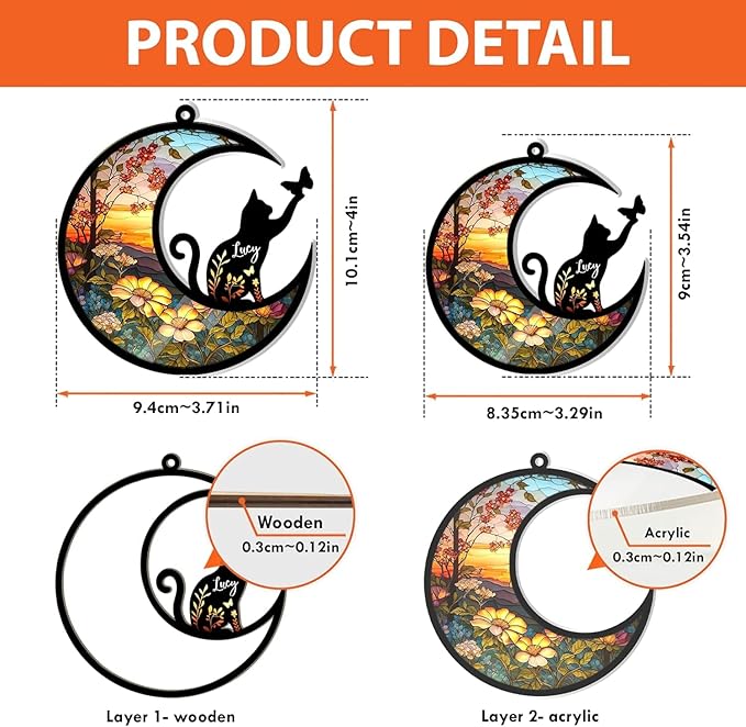 - PERFECT QUALITY AND DURABILITY: The wood is made of environmental-friendly fiber wood. The acrylic one is made from acrylic plexiglass. Printed in one side, and thickness is 6mm.The 2 parts of the product are glued together with a strong glue. Suncatcher ornament is covered with high quality and vivid color printing.