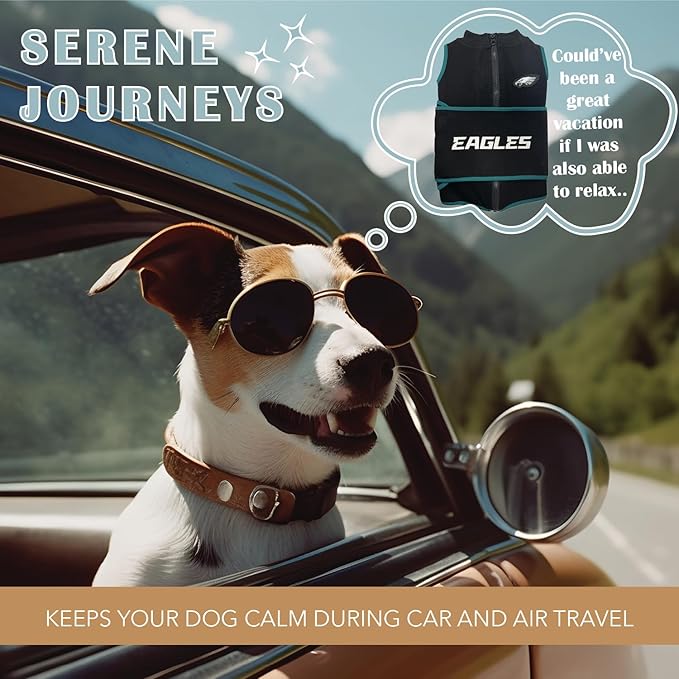 NFL Philadelphia Eagles Dog Anxiety Shirt Calming Soothing Solution Vest for Dogs/Cats with Anxiety, Fears, Fireworks, Loud Noises, Dark, Lonely Keeps Dogs Calm Feeling Safe, Relaxing Jacket, Large