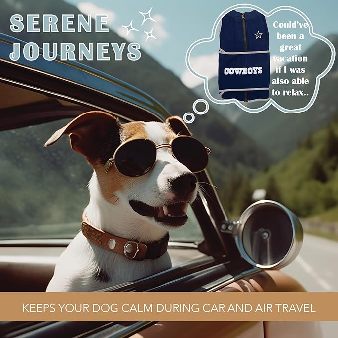 NFL Dallas Cowboys Dog Anxiety Shirt Calming Soothing Solution Vest, for Dogs & Cats with Anxiety, Fears, Fireworks, Loud Noises, Dark, Lonely Keeps Dogs Calm & Feeling Safe, Relaxing Jacket, Medium