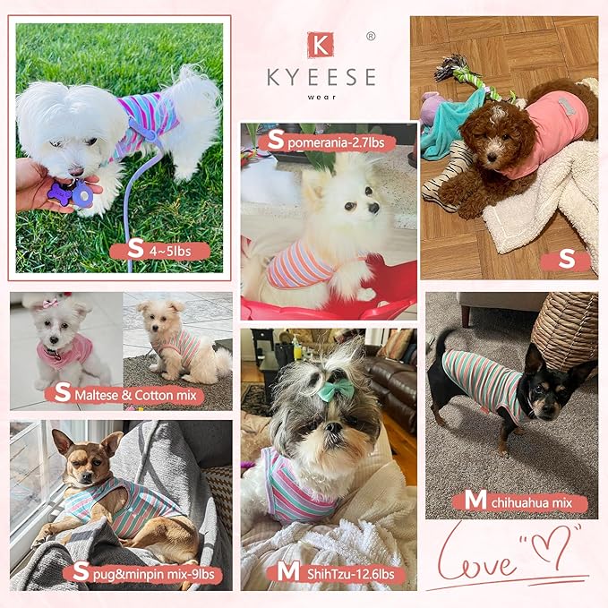 KYEESE 2Pack Dog Shirts Striped for Small Dogs Soft Stretchy Dog T-Shirts Lightweight Tank Top Sleeveless Vest Breathable Cat Outfit, Small, Rose Red+Blue