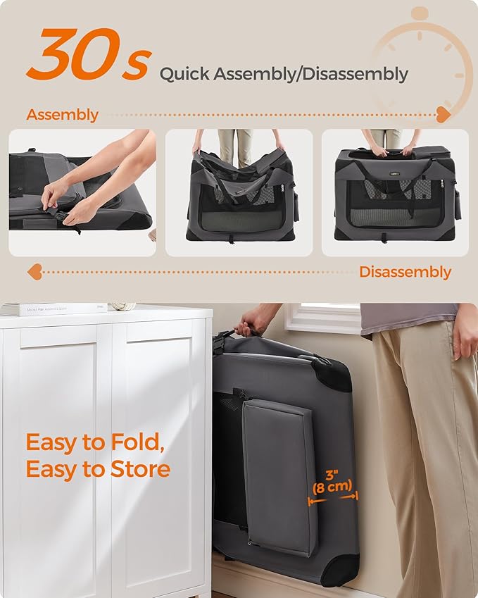 - 【ANTI-ESCAPE & STRONGER】Featuring self-locking zippers that ensure pets can't open it from the inside, the travel dog crate enhances safety while traveling. The thick steel frame and Oxford fabric are scratch- and tear-resistant for prolonged service life