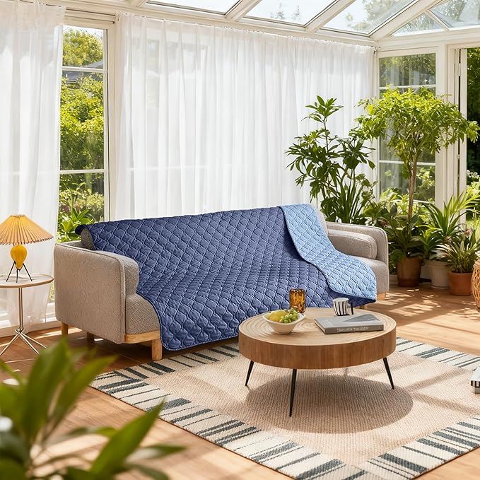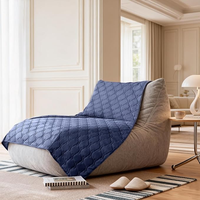 gogobunny 100% Double Sided Waterproof Dog Blanket Soft Pet Bed Cover Reversible Protect Furniture Couch Sofa Car for Puppy Large Dog Cat (Dark Navy/Light Navy, 52x82 Inch (Pack of 1))