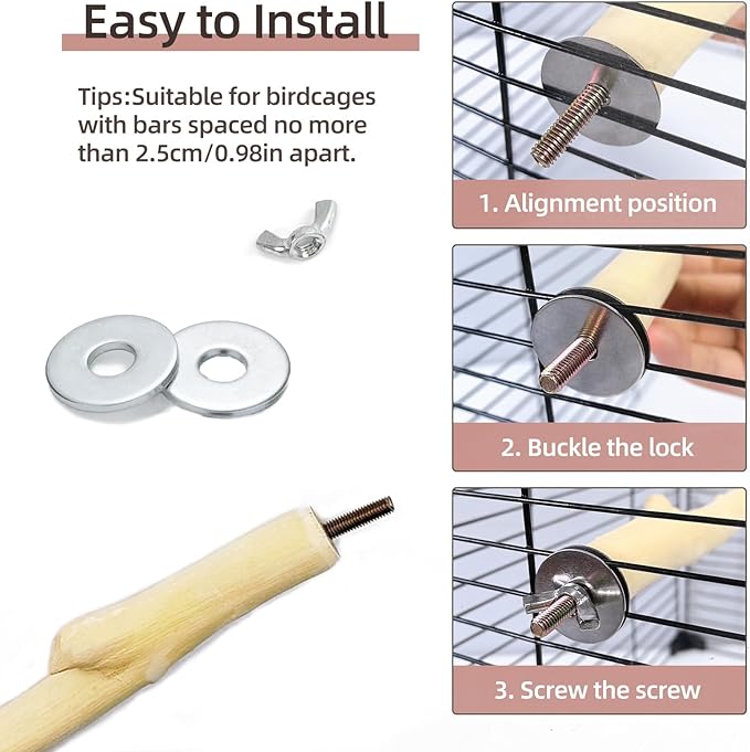 - Easy To Install - no tools required, securely attached to the cage using built-in bolts and wing nuts. Mount inside or outside the cage to provide additional living and landing space.